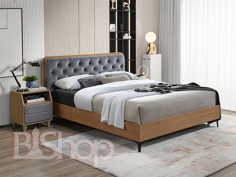 DONNA Ліжко двомісне VELVET 160X200 SZARY/DĄB BLUVEL 14