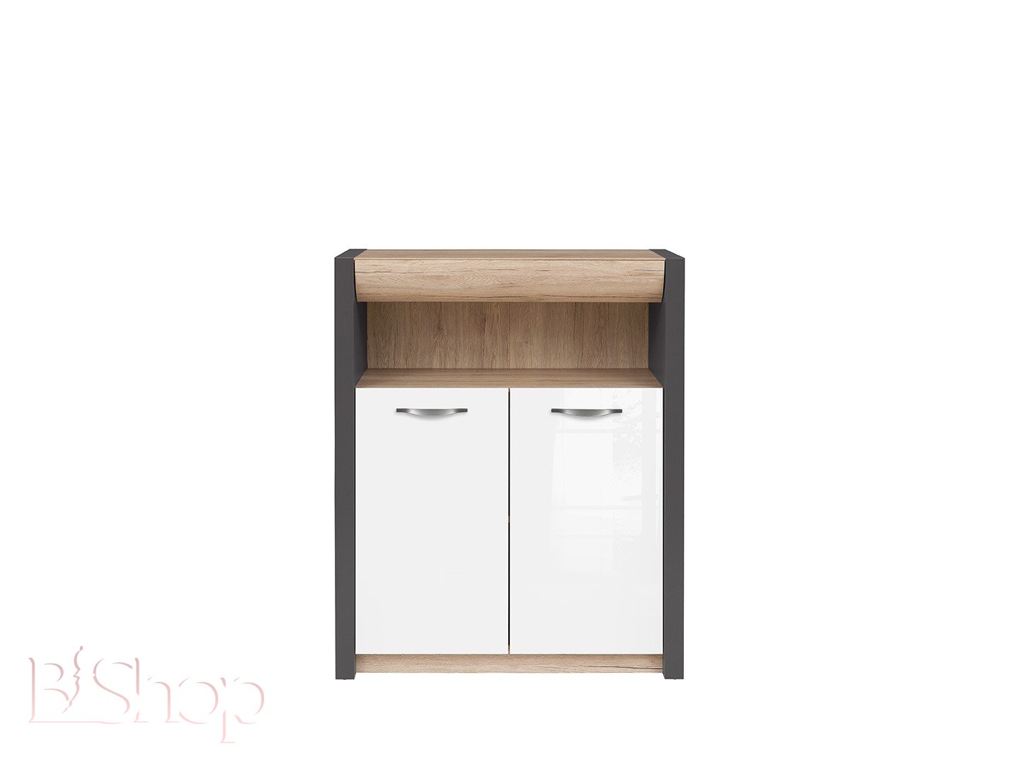 Комод Executive REG2D1S/11/9, розмір: шир.,вис.,глиб., 90 /113,5 /40,5см, колір : сірий Вольфрам /дуб Сан-Ремо світлий /білий глянець