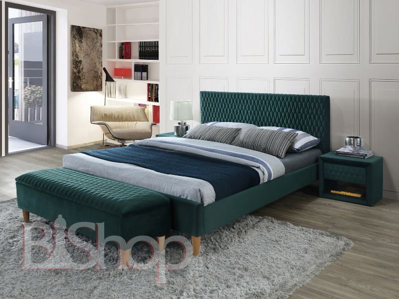 Двоспальне ліжко Signal Azurro Velvet 160x200 зеленый (AZURROV160ZD) розмір 160х200 колір зелений