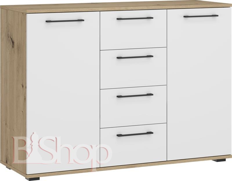 FLEX Комод широкий KM-2 колір дуб / білий фасад розмір 116/40/82 cm