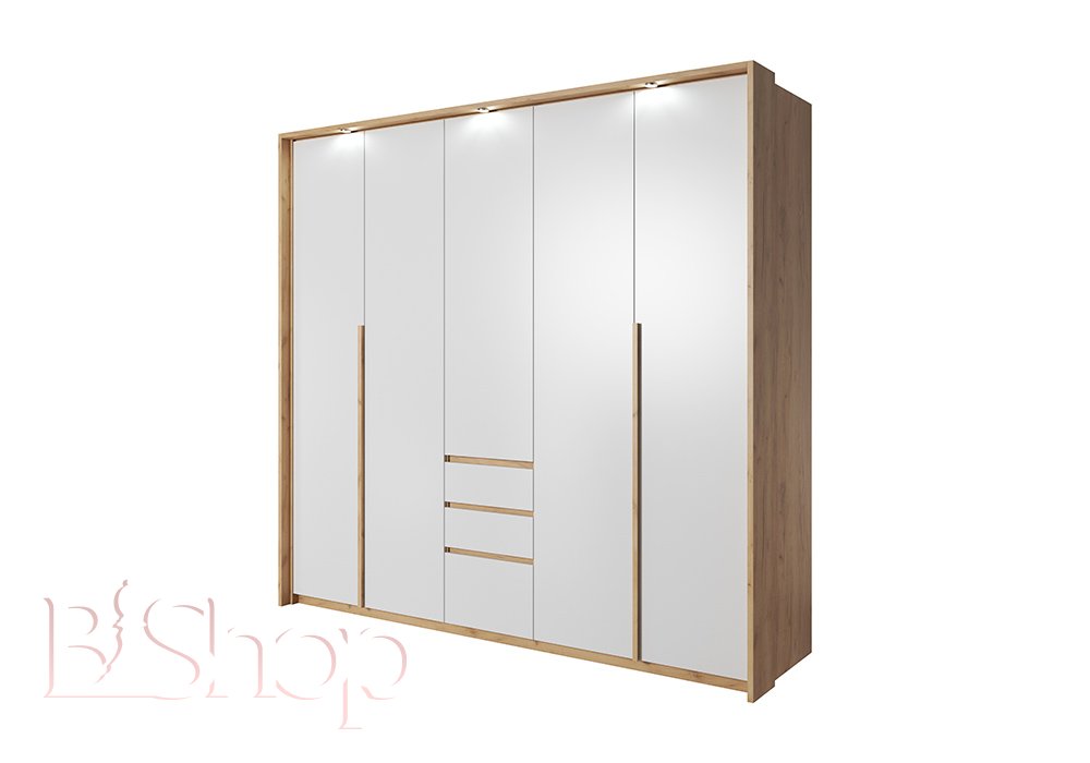 ШАФА ДЛЯ ОДЯГУ XELO 5D3S/230 5-ДВЕРНА ДУБ КРАФТ ЗОЛОТИЙ/БІЛИЙ