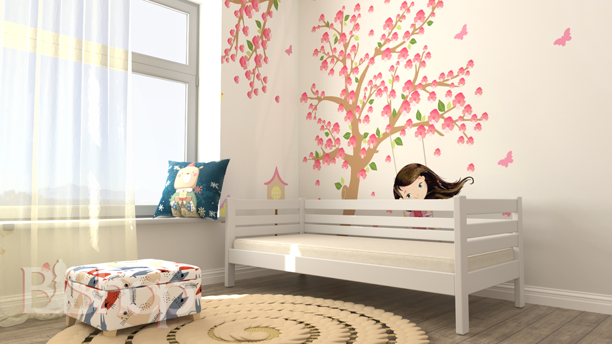 Ліжко може мати кольорові варіанти, що прикрашають кімнату, а також підходить для різних інтер'єрів. Додатково ліжко може бути оснащене висувними ящиками для зберігання іграшок або постільної білизни, що додає зручності.