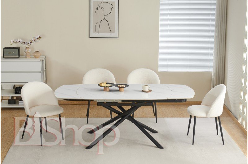 Стіл обідній Гатвік (чорний/кераміка білий) Розмір: 1300(+300+300)*900; Висота: 760. Колір: Ніжки: Чорний; Столешня: кераміка білий Матеріал: Ніжки і каркас: Метал; Столешня: кераміка