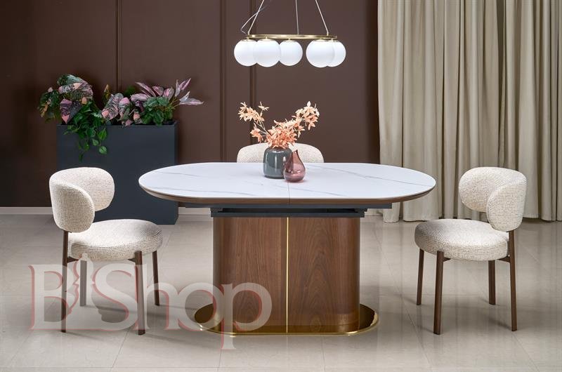 Розкладний стіл HALMAR GIBSON 160-220/90 см, білий мармур / горіх / золото