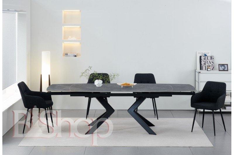 Стіл обідній Топаз (чорний/кераміка сірий)