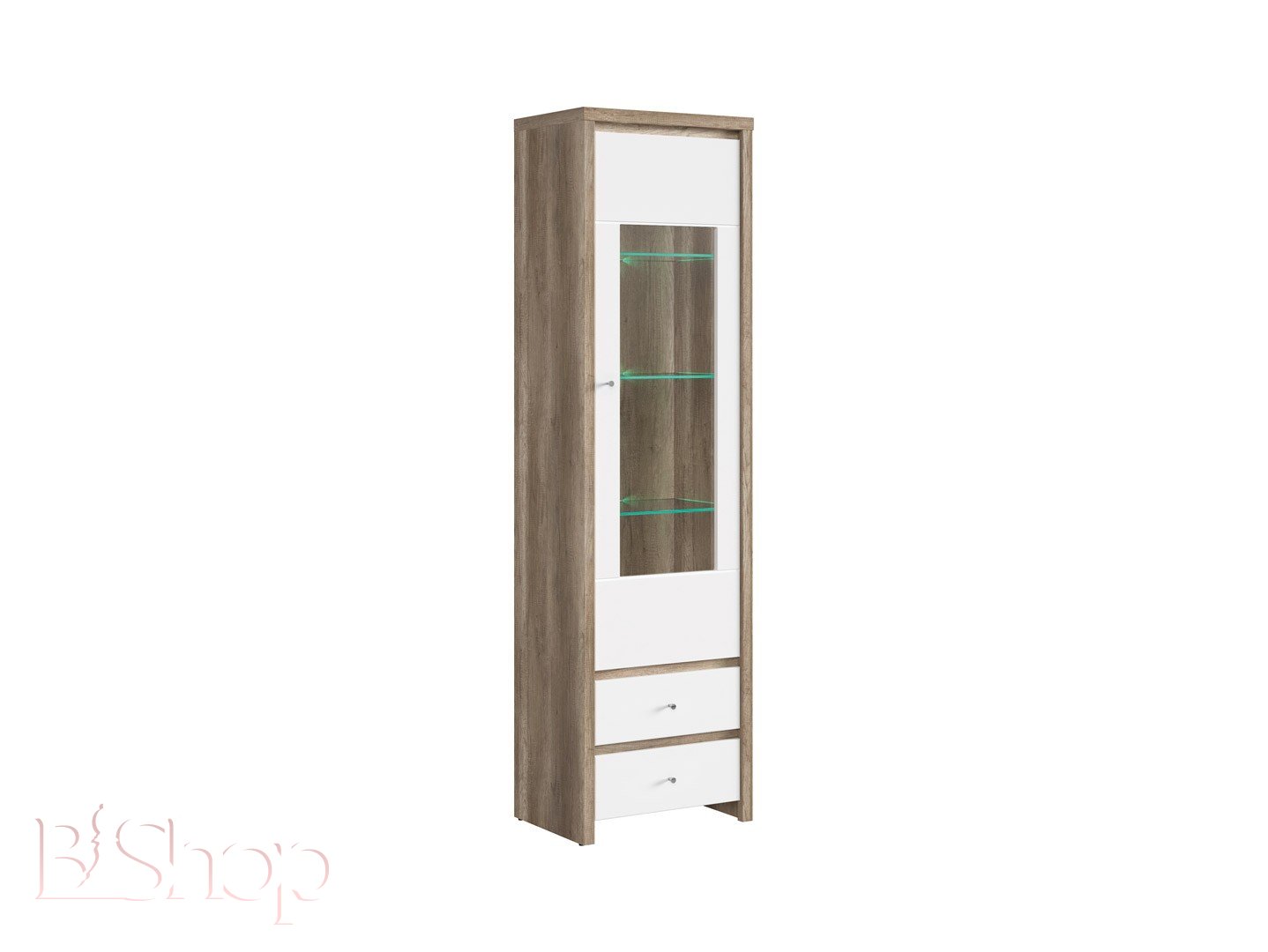 KASPIAN REG1W2SL витрина BRW высота: 200,5 см ширина: 56 см глубина: 40,5 см цвет дуб\ белый