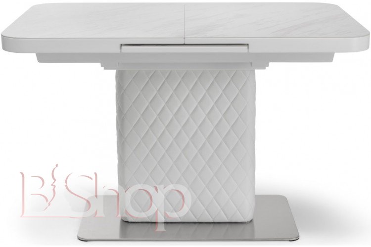 Стіл "Кріс" 120-160x80 см скло білий мармур