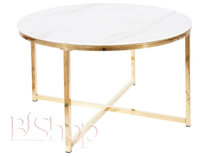 SALMA Стіл журнальний білий мармур із золотом FI 80 розмір 80х80х45 см