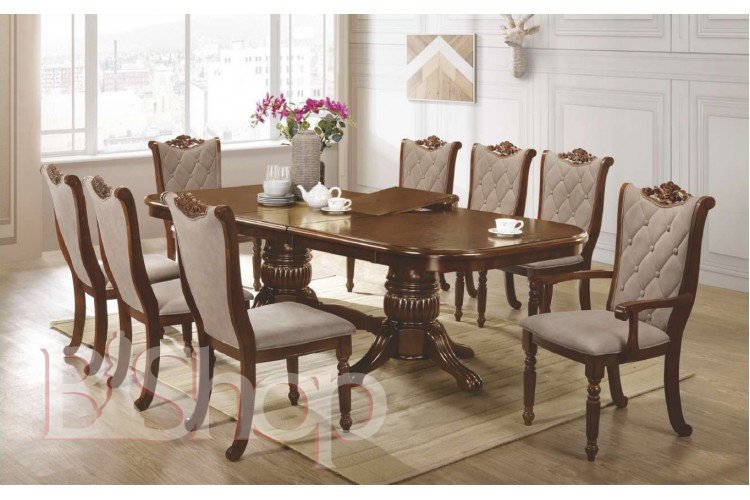 Стіл "Кембрідж" 200-300х120 см горіх +10 (8+2) стільців